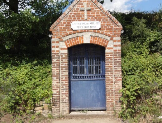 Lavoir couvert en briques et pierre bleue. Encaissé par rapport à la rue. Trottoir pavé de grés aux abords du lavoir. Verdissement en couvre-sol aux abords. Attestation d’existence en 1598 et restauration récente en 2007.