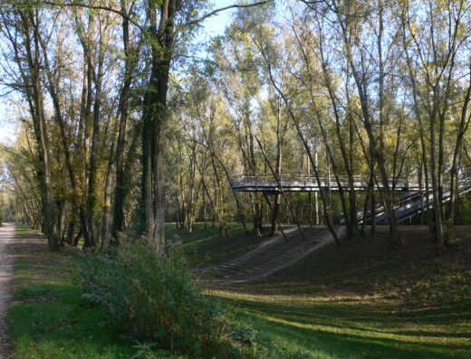 Il s’agit d’une portion de l’Aqueduc romain du Gier qui traverse la commune de Chaponost (6km). Belle alternance de murs avec un joli parement réticulé rosé et des arches portant le canal. L’aqueduc présentait ainsi un parcours aérien de plus de 900m.