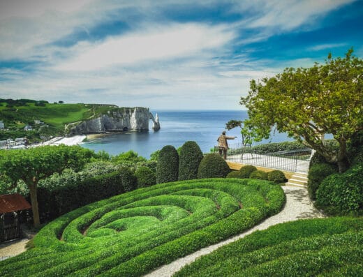 Édifié en 1629 sur les fondations d’un manoir médiéval, selon un plan attribué à François Mansart, le château de Daubeuf est resté habité jusqu’à aujourd’hui. Sis au cœur d’un vaste domaine agricole dans le fertile pays de Caux, le site a été amplement transformé à la fin du XIXème. D’imposantes écuries, en forme de fer à cheval, et un chenil spectaculaire ont alors été construits à proximité. A la même époque, Eugène Bühler, paysagiste de renom, a dessiné le Jardin Bas et la pièce d’eau derrière le château. Acquis en 2014 par Jérémie et Guyonne Delecourt, le domaine classé monument historique fait actuellement l’objet d’une importante campagne de restauration. Il allie jardin potager en permaculture, vergers, lieux boisés, jardin à la française et monuments historiques.